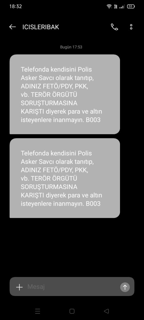 Beni numara aradığında telefonum kırmızı yani spam numara olarak gözüktü. Kendilerini avukat olarak tanıttılar ve kurumsal bir bankaya olan borç dolayısıyla hacize geleceklerini söylediler. Şimdi yarın eve gelirlerse diyelim ki, gerçek polisler resmi olarak yapılması gereken bir şey varsa yaptılar ama kuşkum şu ki, bunlar ya bir dolandırıcı şebekeyse icra memuru, polis memuru olarak kendilerini tanıtıp eve girmeye kalkarlarsa?