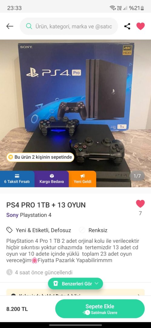İlan fotoğraflarda var fiyat bana iyi geldi. Daha önce tamir görmediğini söylüyor. PlayStation'dan pek anlamam. Pro'nun eksi bir yanı falan var mıdır acaba?