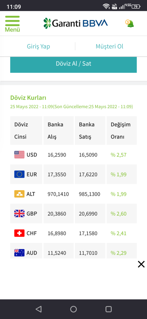 Garanti'de şu an 16.50 TL.