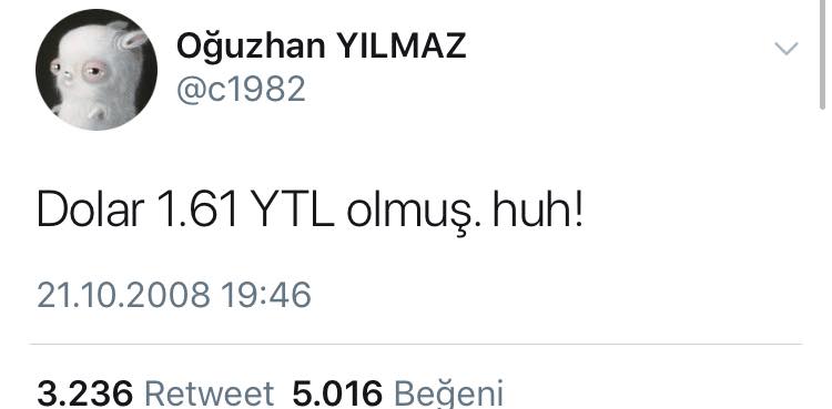 2008'de zaten 1$=1.6₺ falandı yanlış hatırlamıyorsam, 2014 oncesine kadar 2 TL'yi geçemedi ülkede alım gücü hissedilir bir şekilde düşmesi 2016'dan sonraki dönem 2017 sonra yaşanmaya başladı "Verin bu kardeşinize yetkiyi bakın nasıl uğraşıyorum dolar ile." adlı repliğin ardından 4.9'lara sıçraması rahip ve orta doğu meseleleri ile 7'yi gördük, 2018-2019 döneminde. Her şey çok hızlı değişti aynı hız devam ediyor, gecen sene 250'lere inanmıyorken altının gramına bu sene 400'ler geldi 450 ise çok yakın gelecek. Her şey cok degisken ve kırılgan bunu 90'lı nesil daha iyi algılayabilir ceyrek altinin 20 TL oldugu zaman çocuktum, 100 TL oldugu zamansa ergen on küsur yıl, 150 liradan 630'a cıkması ise sadece son 4 yıl. Sanki 5X hızlandırılmış bir video icinde gibiyiz.