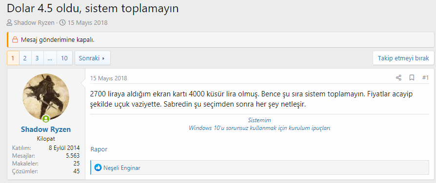 2700 liraya aldığım ekran kartı 4000 küsür lira olmuş. Bence şu sıra sistem toplamayın. Fiyatlar acayip şekilde uçuk vaziyette. Sabredin şu seçimden sonra her şey netleşir.