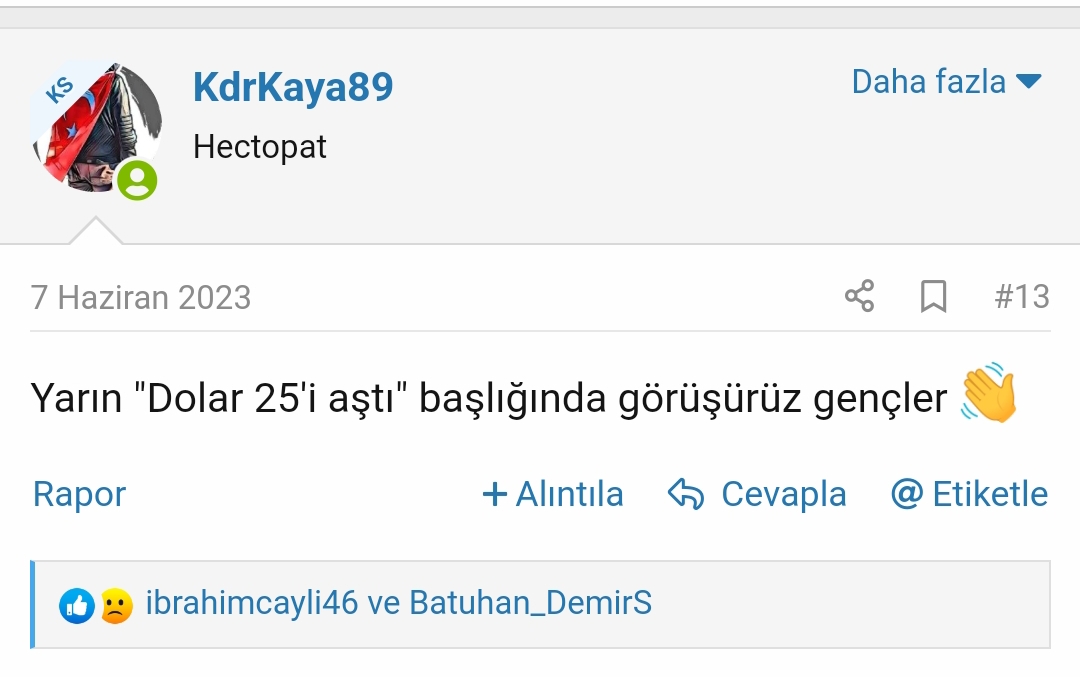 Merhaba, tam 15 gün sonra dolar %10,86 artarak 25.5 seviyesine sıçradı.