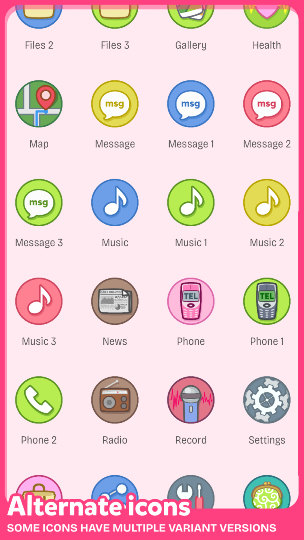 Dollphone Icon Pack - Aşırı hiperaktif olmayan sevimli simge paketi.