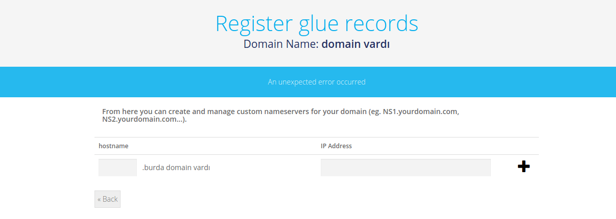 Son olarak freenomda eklemeye çalıştığım kayıt bölümü: