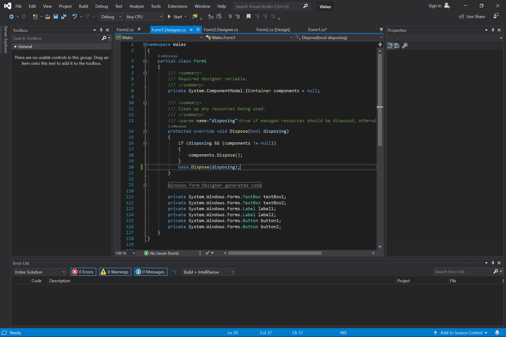 C#:this.FormClosing += new System.Windows.Forms.FormClosingEventHandler(this.Form2_FormClosing); this.FormClosed += new System.Windows.Forms.FormClosedEventHandler(this.Form2_FormClosed);