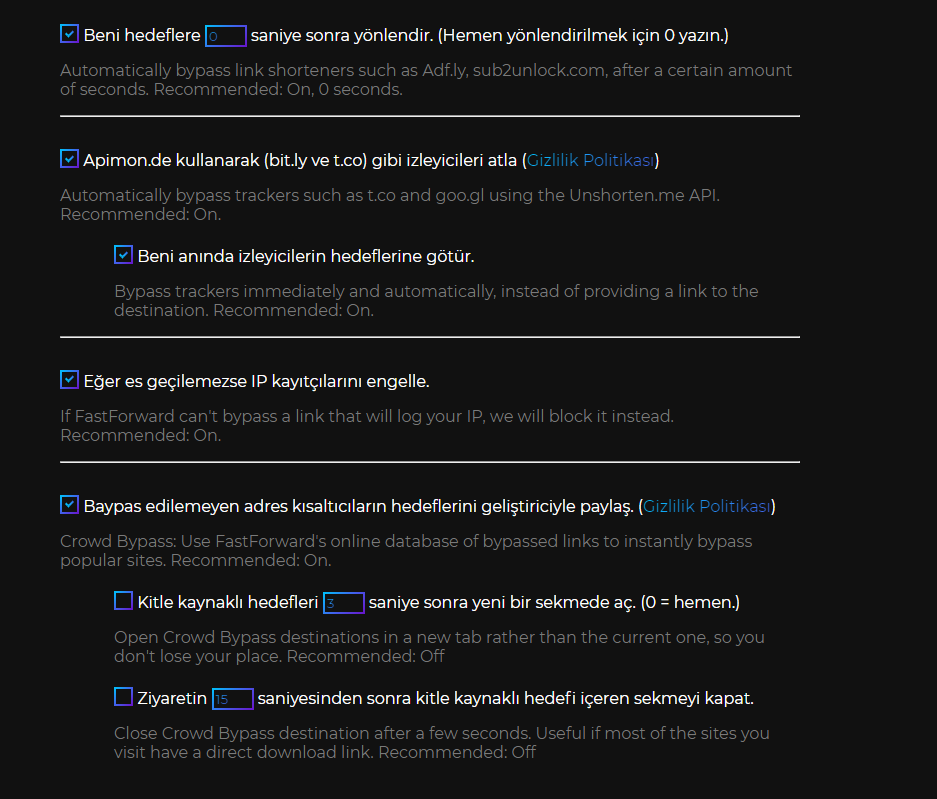 Öncelikle sa. Herhangi bir bir şey indireceğimde genel olarak artık dosya TR diye bir link kısaltıcı var. Fastforward ve outo link bypasser diye 2 eklenti indirdim. Ama ya ben tam ayarlayamadım bilmiyorum geçilmiyor. Şaka gibi nasıl geçilir? Yardımcı olabilir misiniz?