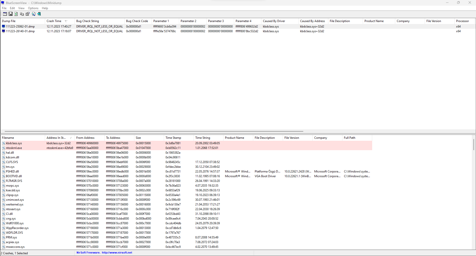 Merhaba arkadaşlar Monster Abra A5 v17.2 kullanıcısıyım daha önce mavi ekran sorunumla ilgili bir konu açmıştım gayet güzel bir şekilde çözüm bulmuştum fakat şu an tekrar aynı mavi ekran hatasını alıyorum. Minidump dosyalarını BlueScreenView ekran görüntülerini aşağıya ekliyorum bir bakarsanız ve yardımcı olursanız sevinirim şimdiden ilgilenen arkadaşlara teşekkür ederim