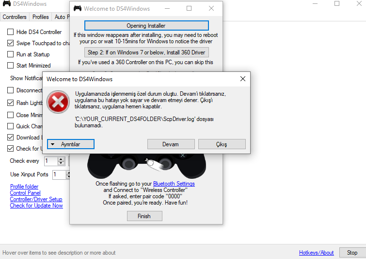 DS4Windows "ScpDriver.log" hatası
