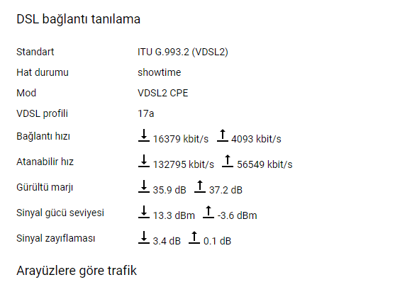 Hocam eskiden 156 mbps down 60 mbps up alıyordum bir anda düştü. Bina içinde klasik telefon kablosu var. Bu değerler ile 100 down 8 up deneyeceğim. Sinyal gücü seviyesi bende -3,6 olarak gözüküyor. Eksi olma sebebi nedir?79865 ve 79861 DSLAM kilidi profilidir. Kilide yakalanmışsınız fakat kaldırtsanız bile anlamı olmaz. Zaten 80 Mbit sabitlemişler. En iyisi ellememek.