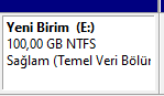 Ben örnek olarak 100 GB ayırdım, siz ne kadar ayırmak istiyorsanız o kadar ayırın.