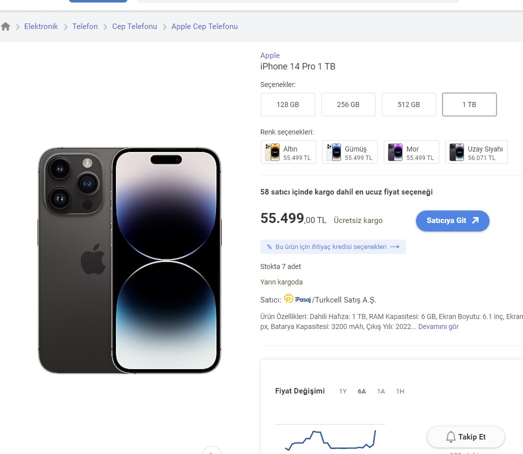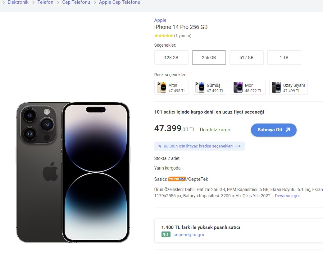 Elimde iPhone 14 Pro 1 TB var. 14 Kasım 2022 de Amazon Türkiye'den aldık. Dubai'ye gidiyoruz orada 24K civarıymış, vergi ile 30K'yı bulur. Elimdekini burada kaça satabilirim? Elimdekini satıp sıfır kullanmak istiyorum. Üstüne kazanç yapmam mümkün mü? Yapmasam bile sıfır telefona geçmiş olurum.
