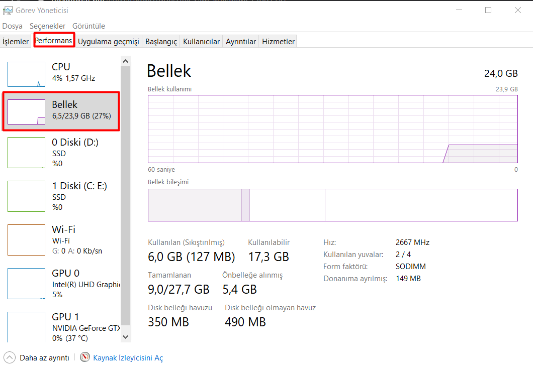 Görev yöneticisinde gördüğünüz ram miktarı nedir?