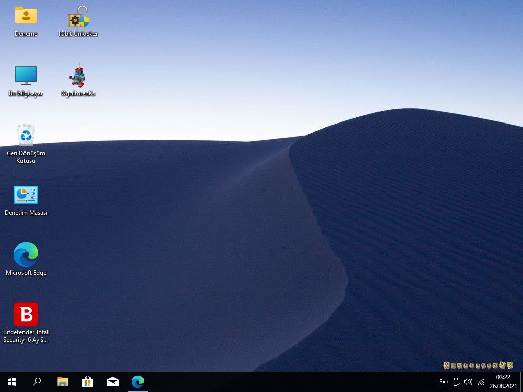 Ağ simgesi dışında masaüstü simgeleri aktif.
