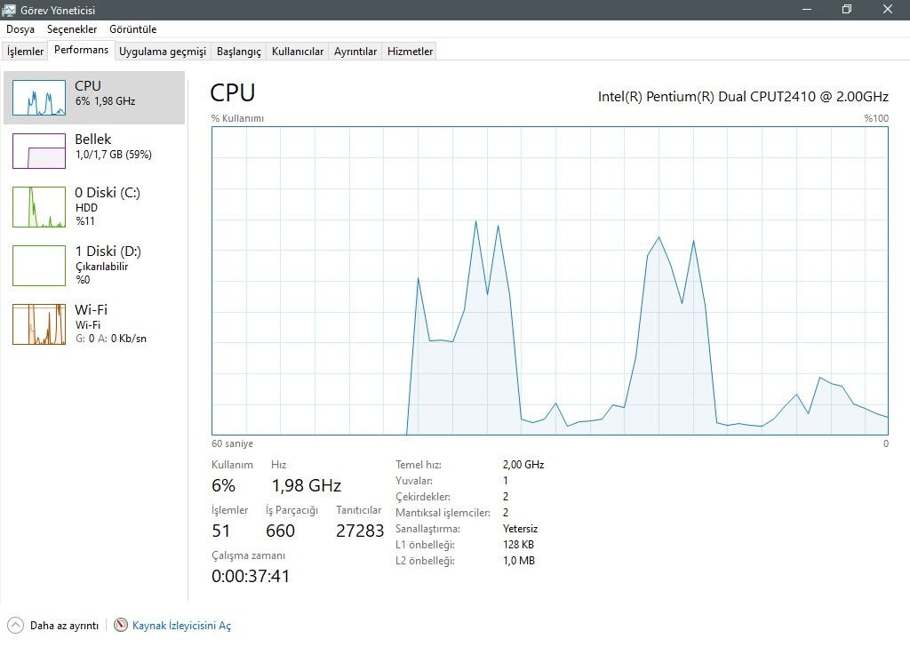 2. İlk masaüstü ekranında %100 disk sorunu yaşıyorum. HDD kullanan kullanıcılarda bu oluyor. Windows otomatik disk birleştirme işlemi çalışırsa böyle bir durum oluşur. Herhangi bir problem söz konusu değildir. İşlem bitince disk kullanım oranı düşecektir.