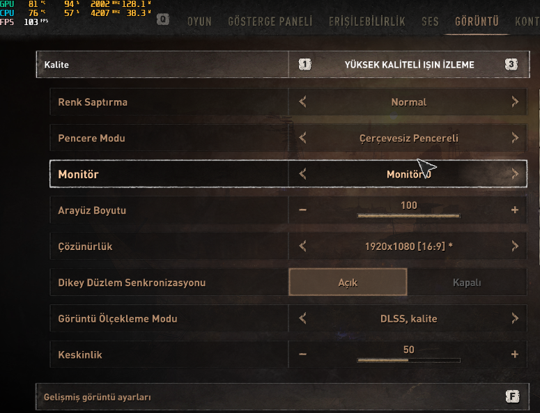 Oyunu tam ekran değil de çerçevesiz tam ekran ve V-Sync kapalı şekilde çalıştırmak FPS sorununu çözüyor. Bu dediğim iki ayarı yapın umarım sorununuz çözülür.