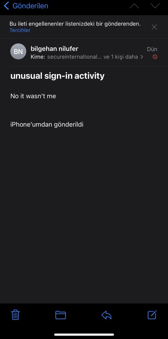 Merhaba, dün iPhone mailler uygulaması üzerinden Hotmail'e bakarken gereksiz e-postalar klasörüne taşınmış bir e-posta gördüm. E-postanın fotoğraflarını ekliyorum.