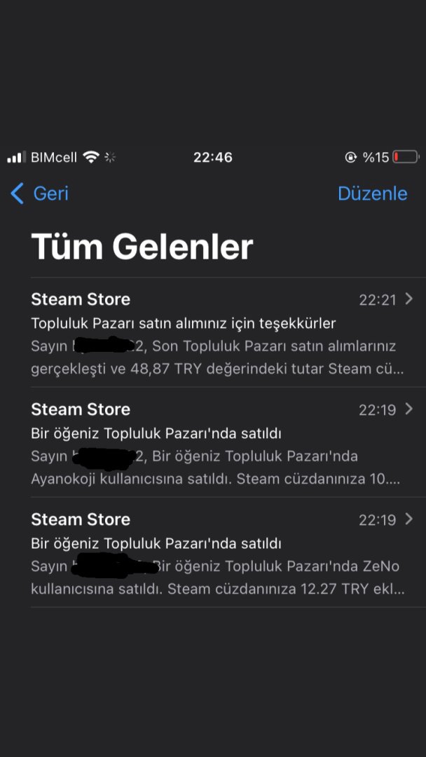 Hocam peki steam hesabı hakkında bir bilginiz var mı , herif nereye bağlıysam girmiş , Steam envanterimi boşaltmış bir güzel . Bana ne onaylamam için telefon uygulamasına bir bildirim geldi ne de başka bir şey . İş işten geçtikten sonra mail gelmiş sadece . Guardlar açık olmasına rağmen