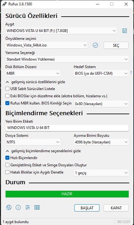 Rufus'da MBR olarak hazırlamanız gerek USB'yi.