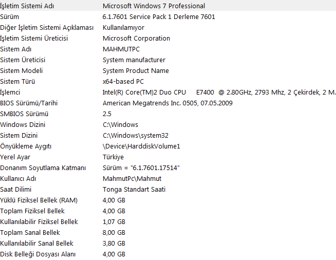 Başlat Menüsü>Programlar>Donatılar> Sistem Araçları >Sistem Bilgisi buradan. Ama ben size önerebileceklerimi önerdim.Nereden öğreniliyor?