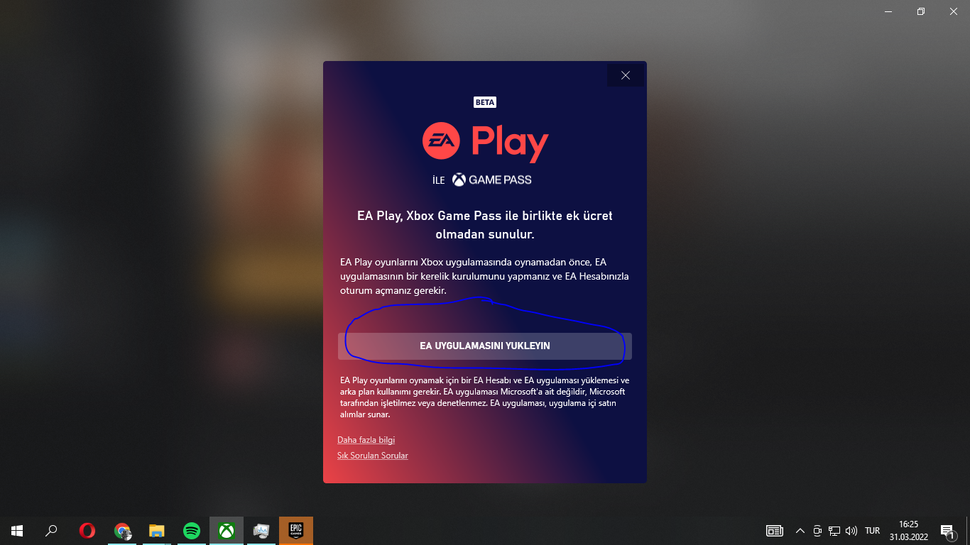 Merhabalar. Bir süredir Xbox Game Pass kullanıyorum fakat bazı oyunları kurmak için EA App kurmamı istiyor. İndir seçeneğine tıkladıktan sonra 2. fotoğraftaki hatayı alıyorum. Ve yine 2. fotoğraftaki linke gidip uygulama setupını indirip üstüne tıkladığımda hiçbir şey olmuyor fakat uygulama görev yöneticisinde görünüyor. Kısacası uygulama kurulmuyor.