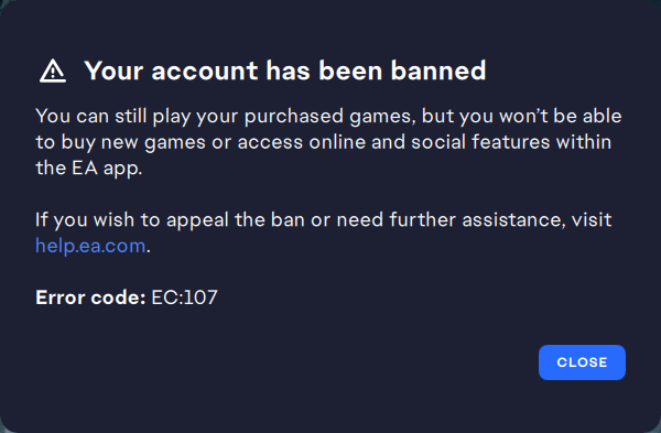 Dün Steam üzerinden EA Play almıştım ve tüm oyunları kütüphanene ekleyip çoğunu indirmeye bırakmıştım. Bugün sabah FIFA 23 girmeye çalıştığımda "hesap bilgisi alınamadı" gibi bir bağlantı hatası ile karşılaştım. İnternetten çözümlerine baktım her şeyi denedim ama işe yaramadı. Sonrasında mailine girdiğimde EA hesabımın banlandığını gördüm. Bu nasıl olabilir? Sırf EA Play aboneliğini Steam üzerinden aldım diye ban yemem çok saçma değil mi?