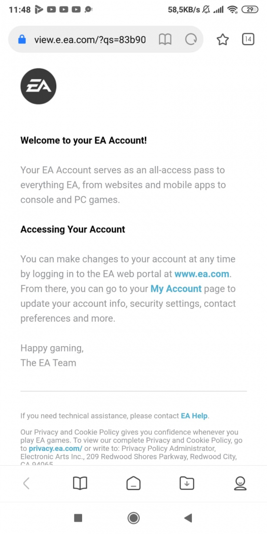 Hocam sizin hesabınız açılmış herhangi bir problem gözükmüyor origin sitesi yerine EA sitesine girmişsiniz siz.
