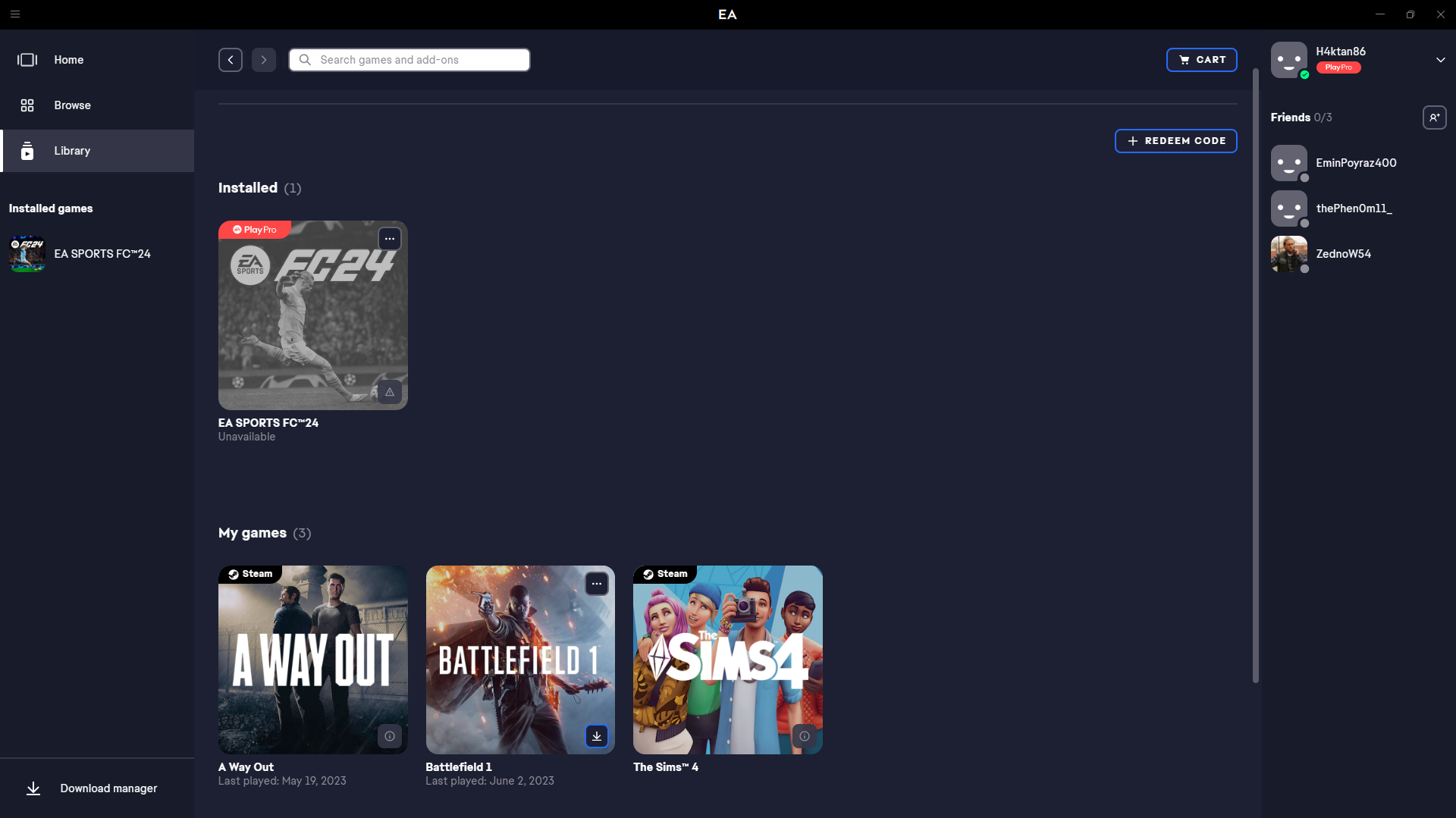 Steam üzerinden EA Play aldım ve FC24 10 saatlik deneme sürümünü oynadım, oyunu beğendim EA App üzerinden EA Play Pro satın aldım. Ancak FC24 oyununa giremiyorum.