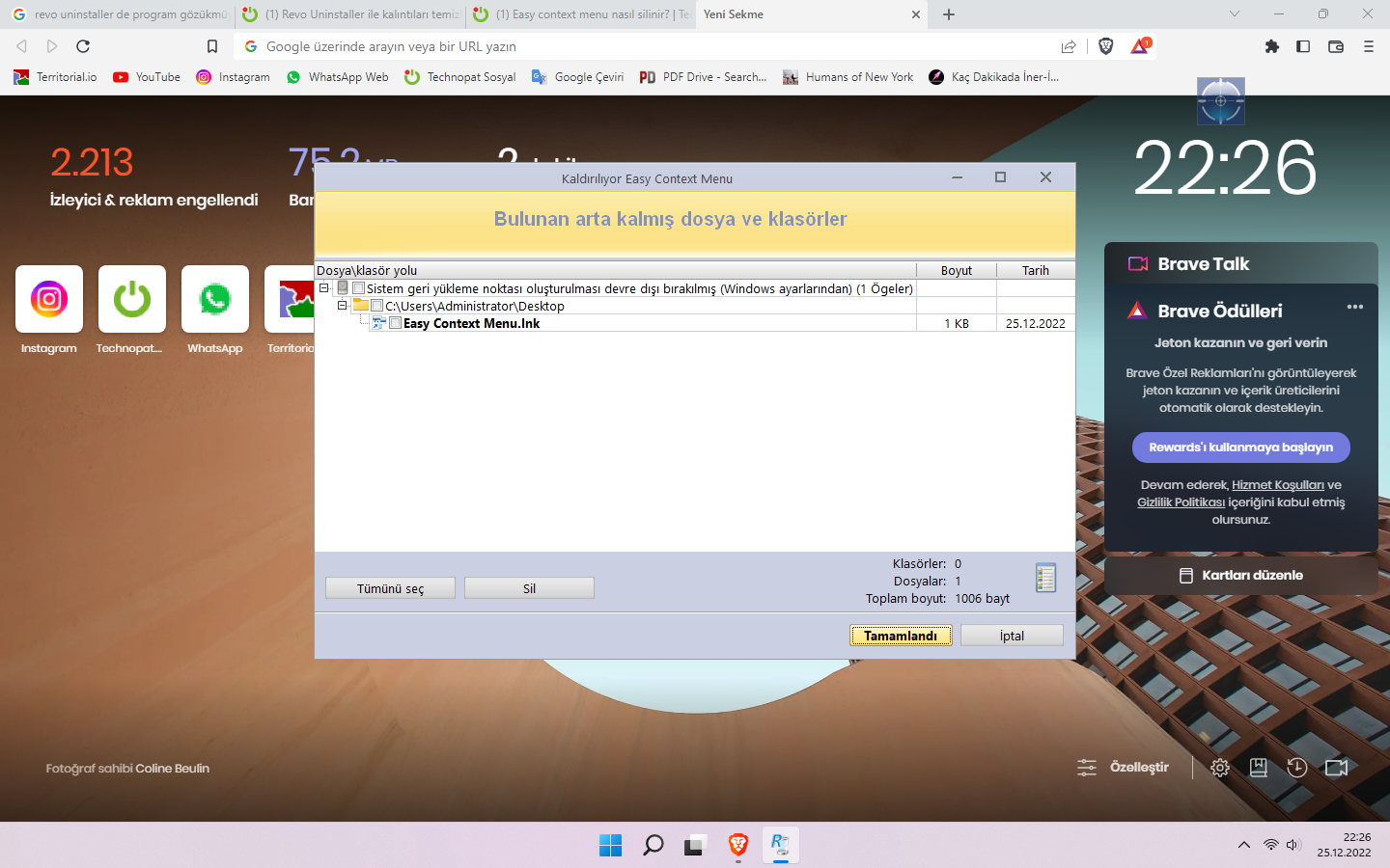 Arkadaşlar easy context menu diye bir program yüklemiştim programı sildiğim halde fotoğraftaki yerden gitmiyor. Windows 11 kullanıyorum pencereye sağ tıkladığımda programın hâlâ burada varlığını koruduğunu görüyorum. Bunu buradan nasıl silebilirim?