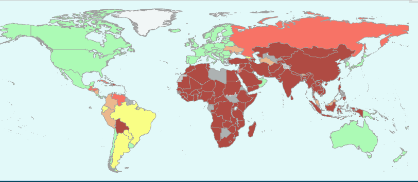 Belki de bu yüzden WHO, TR'yi Kırmızı listeye almıştır. Bu hayvan romantizminin bizi seviyesine çektiği ülkeler aşağıdaki haritada mevcut;