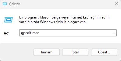 2. gpedit” yazın ve enter tuşuna basın. grup ilkesi düzenleyicisi açılacaktır.
