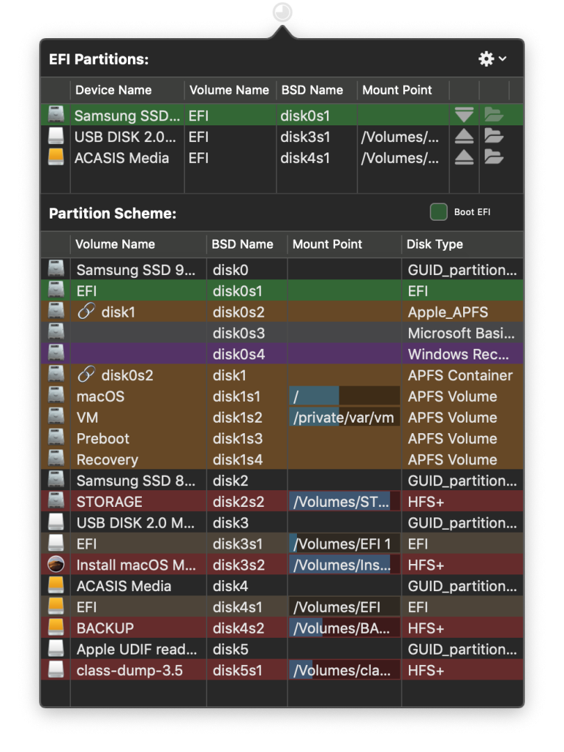 EFI Agent - EFI bölümünü kolayca menü çubuğundan yerleştirmeyi sağlayan araç.