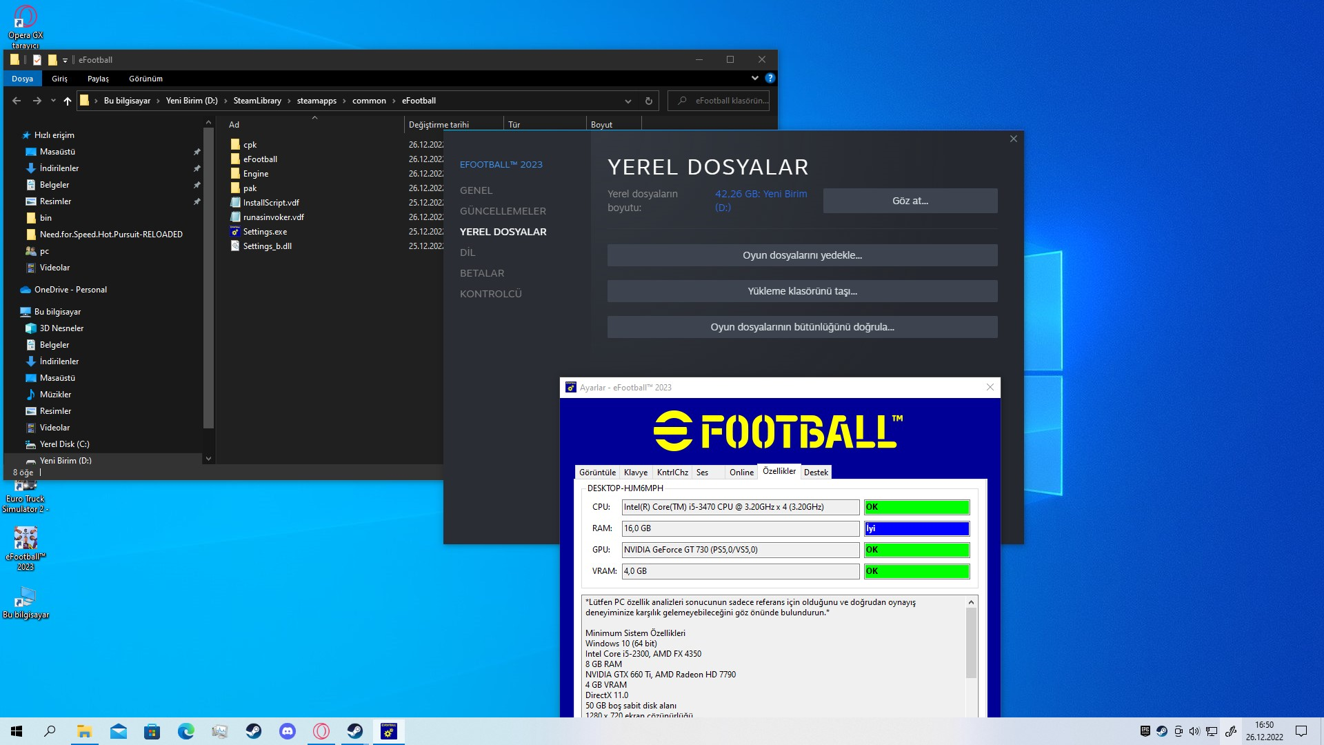 Efootball™ 2023 yükledim bugün fakat açarken PhysX+GPU yazısı veriyordu onu çözdüm ama siyah ekran sorunu devam ediyor pencereli bir ekranda açıp 1 2 sn kadar duruyor ve kapanıyor yönetici olarak da denedim fayda etmiyor bir şeye sistemde karşılıyor yeterli derecede ne yapabilirim?