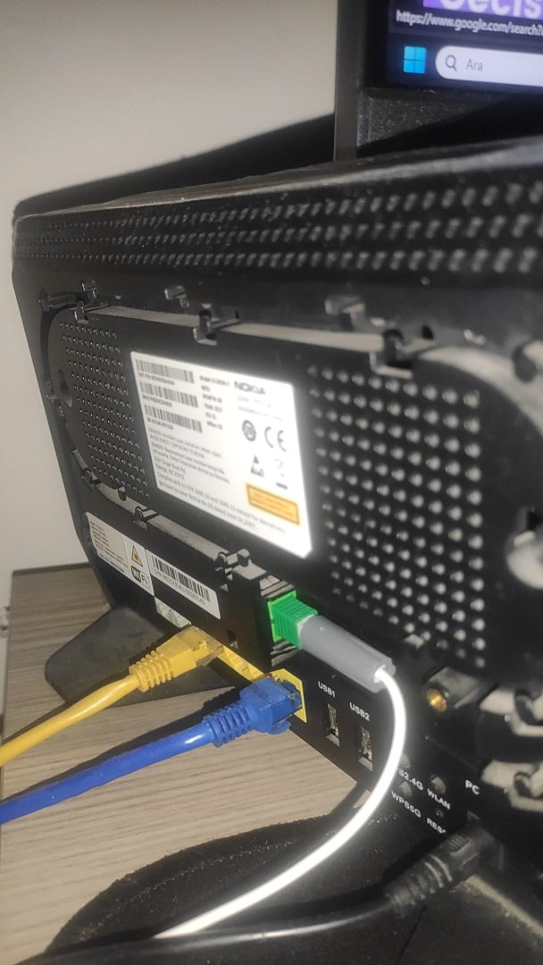 Binanın -1. katında bulunan kutudan daireye kadar fiber optik kablo geliyor. Fakat gelen kablo masaüstü bilgisayarımın bulunduğu odaya kadar yetişmiyor. Dolayısıyla ISS ekibi bir aparatla uzatma yaptı görseldeki şekilde. Fakat internetimde durduk yere kopmalar, hız düşmeleri yaşıyorum. Kabloya ek yapılmasından dolayı olabileceğini düşünüyorum.