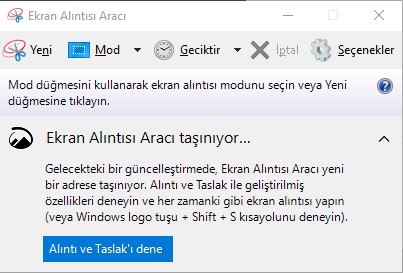 benim bildiğim bu kadar hocam kusura bakmayın.Bende bu şekilde hocam programı açınca. "alıntı ve Taslak'ı dene" deyince başka bir pencere açılıyor, o pencerede "yeni" var ona tıklayınca alacağın SS i seçiyorum sonra kaydedebiliyorum da bayağı uzuyor yani bu iş bir anlamı kalmıyor.