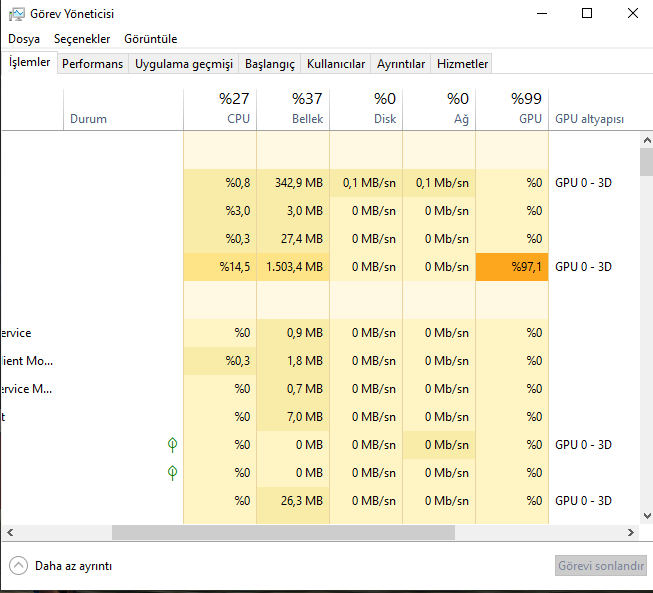 Ekran kartının tamamen kullanılması istediğimiz bir şeydir. Ekran kartı az kullanılıyorsa ya darboğaz vardır, ya güç kaynağı yetersizdir veya bilgisayarınız bu oyun için çok güçlüdür.