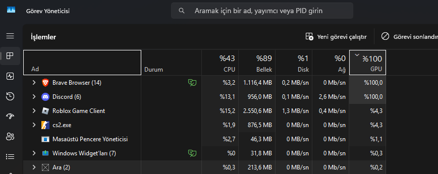 Ekran kartı %100 kullanılıyor