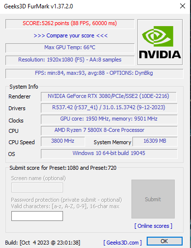 3080'i 1080P'de değil de 4K da test etmek daha mantıklı ki zaten kartın 60 derecelerde olması çok mantıklı gelmedi bana. Ayrıca Benchmark kismindan değil de çözünürlük ve Anti-Aliasing kısmını elle ayarlayıp Burn-it kismindan calistirip 10 dakika civari gozlemlemek lazım. Bu ekranda kart sahibi güç limitleriyle oynamis olabilir mesela ona bakmak lazim kart kaç W çekiyor, fanlari kimisi otomatik değil de %100'e alip test yapıyor kart serin çalışıyor havasi vermek için ona dikkat etmek lazim çünkü günlük kullanimda sürekli o devirde fan calistirmak cok sağlıklı olmaz, kafa da ütüler. Yani bu ekran görüntüsü tek başına hiçbir sey ifade etmiyor.