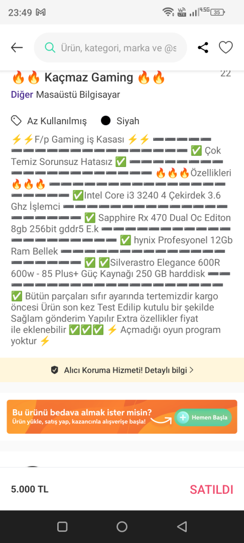 Sistemle beraber aldım toplam 4750 TL toplama PC içindeki parçaların pek bir değeri yok işçiliğini de çıkarırsan Max 1K ile 1.5k arasında falan