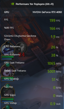 Merhaba geçen ayda bu konu hakkında konu açmıştım aynı sorun devam ediyor. RTX 4060 ekran kartım var. Alt+r kombinasyonundan kartın kaç watt çektiğini göremiyorum sadece yardımcı programlar üzerinden görebiliyorum. Bu durumu nasıl düzeltebilirim?