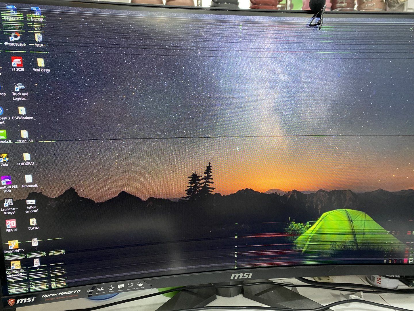Bilgisayarı açınca ekranda bu şekilde çizgiler çıkıyor. Önceden sorun yoktu birkaç haftadır sabahları açtığımda bu şekilde. 10 15 dk sonra düzeliyor. Sorun ne olabilir acaba. PC'nin bulunduğu ortam soğuk, soğuktan mı oluyor acaba ısınınca düzeliyor?