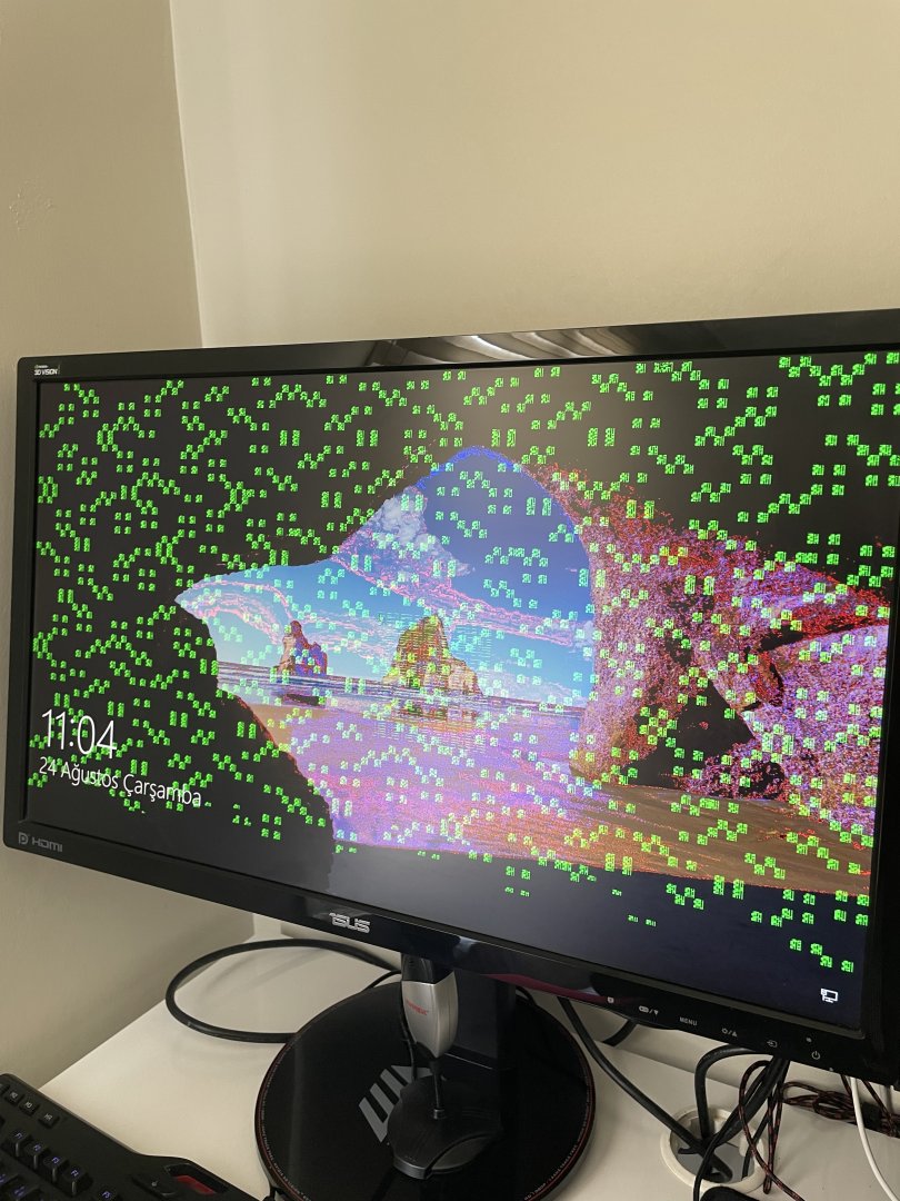 Ekranımda görselde gördüğünüz gibi bir sorun oluştu. Araştırmalarıma göre sorun ekran kartından kaynaklı. Cidden öyle mi ve öyleyse tamiri mümkün mü?