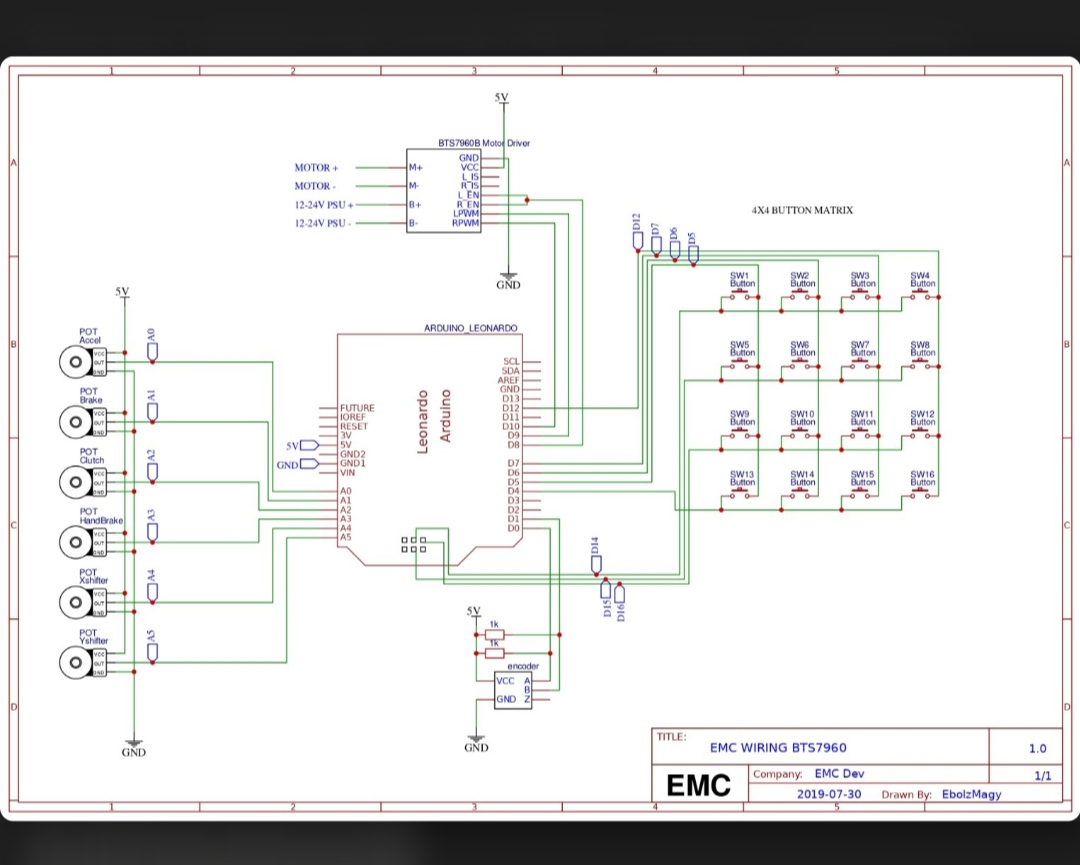 Encoder ve BTS7960 bağlantısını aşsağıdaki gibi yaptım. İlk başta sadece motor direksiyonun dönmemesi için kuvvet uyguladı sonrasında o da olmadı. Wheel Config üzerinden calibrate diyorum sağa 1.5 tur döndürüyor sol tarafa Allah ne verdiyse döndürüyor. Bu sorunu nasıl çözebilirim?