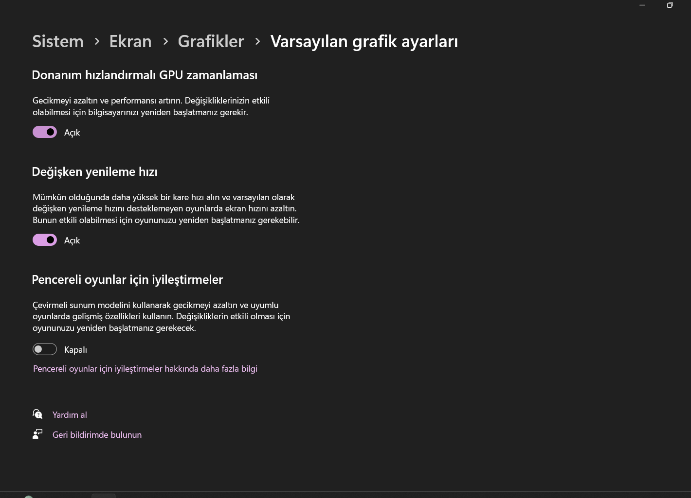Donanım hızlandırmalı GPU zamanlamasını kapat.