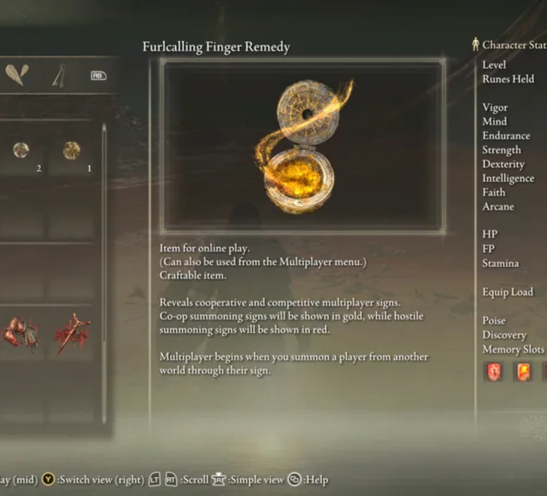 İnternette Tarnished's furled finger kullamam gerektiği yazıyor fakat onu kulanınca başkasının dünyasına gidiyorum.