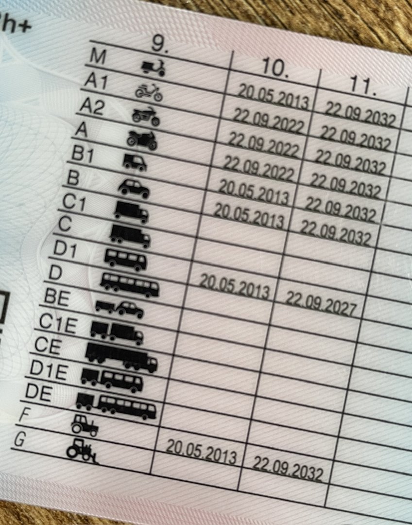 Bak ehliyet arkasında en üstte M var bu Mopet anlamına gelir 3HP'ye kadar sınıfı var. B ehliyeti veya herhangi bir ehliyet alan kişi de burası dolu olur. Ehliyet yolsa bunu da süremez.