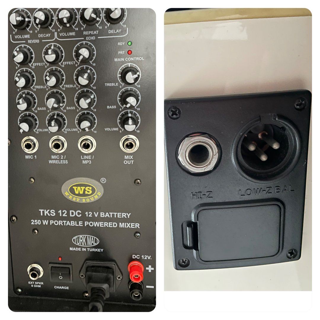Elektro akustik gitarım var. Hiç ses sistemine bağlamadım şimdiye kadar. Okulda bir hoparlör var (soldaki) girişleri böyle. Benim gitarın girişleri de sağdaki fotoda. Nasıl bir kablo almalıyım ki sesi hoparlöre aktarabileyim?