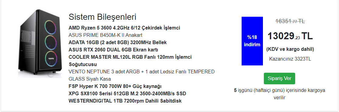Yanlış hesaplamadıysam, 13.000TL'e geliyor. 300TL daha koyup çift fanlı 3060 Alın.