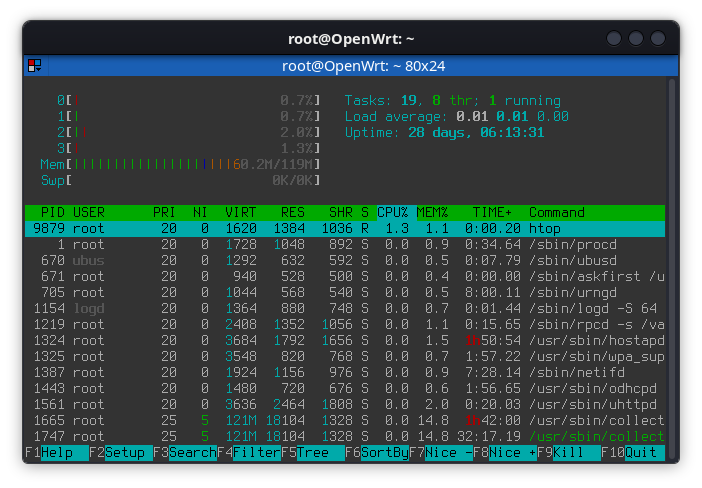 Aktif olarak kullandığım en hafif işletim sistemi modem ve routerler için geliştirilen OpenWRT Linux. Ortalama 64MB RAM kullanıyor.