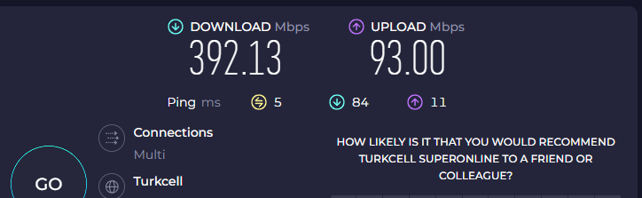 Merhaba, şu an Superonline kullanıyorum kendi evimde ve 26 Mbps'ydi ders için iyi ama artık oyun filan başladım bu evde o yüzden yükselteceğim. Ama hangisine geçim bilemedim TurkNet 80 Mbps download upload 8-16 arası gösteriyor Turkcell 60-70 download arası diyor Türk Telekom da aynı fakat netgsm bilmiyorum sizce hangisi? Gece sorun yaşamayayım, oyunlarda ping gelmesin, oyun indirme gibi şeylerde sorun yaşamak istemiyorum. Şimdiden teşekkürler.