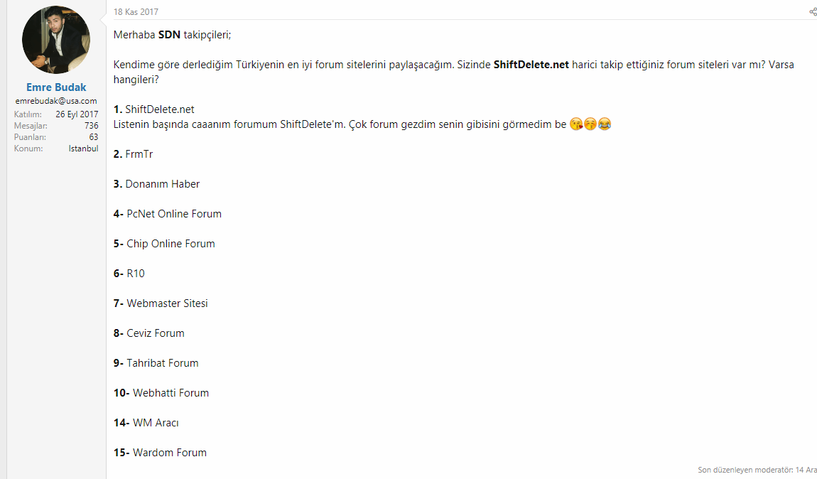 Sadece teknoloji anlamında seviyorum bu forumu diğer alanlar hakkında (din, siyaset, politika, aşk meşk konuları, tedavi arayanlar, dertliler v.s) konu açılınca oluyor en kötü forum 😀 tabi kendi fikrim bu yani şahsi düşüncem. Şöyle de bir gerçek var donanım ve yazılım konusunda düzgün forum yok gibi bir şey yani burası da başı çeker. Buranın dışında donanımhaber ve PCHocası'nın forumu da güzel.